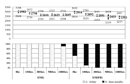 As shown in Figure 2, in the case of Sn/Pb solder, the change of failure mode which indicates a change of the joint interface showed no clear difference when ENIG film was used, but occurred remarkably when ENEPIG was used.