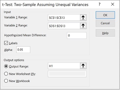 Although t-Tests are relatively robust, they are based on several assumptions: The data are continuous, not categorical. The sample data have been randomly sampled from a population. The variance is assumed to be equal (similar in each group). However, this is no longer an issue with computers, and we can default to test with unequal variances. The distributions are approximately normal. For two-sample t-Tests, we must have independent samples. If the samples are not independent, then a paired t-Test may be appropriate [2, 4].